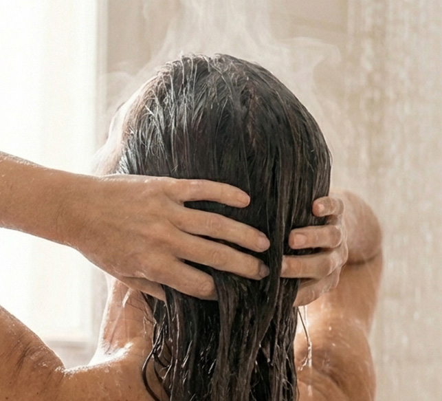 - Aplicar el champú principalmente en el cuero cabelludo.